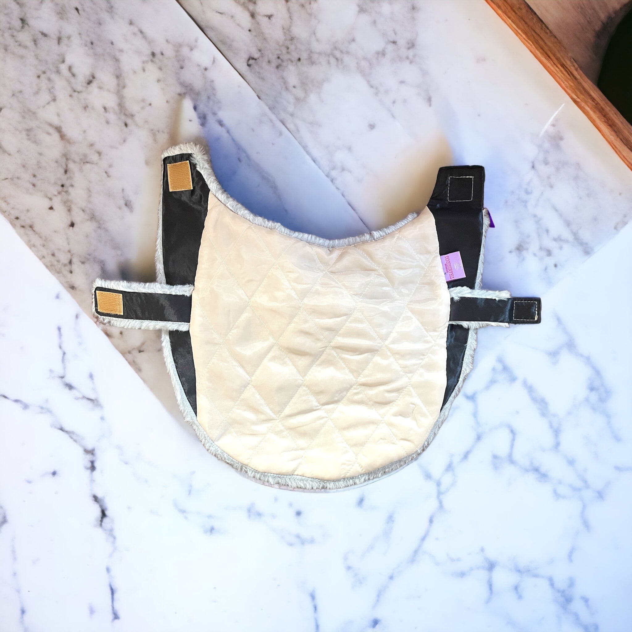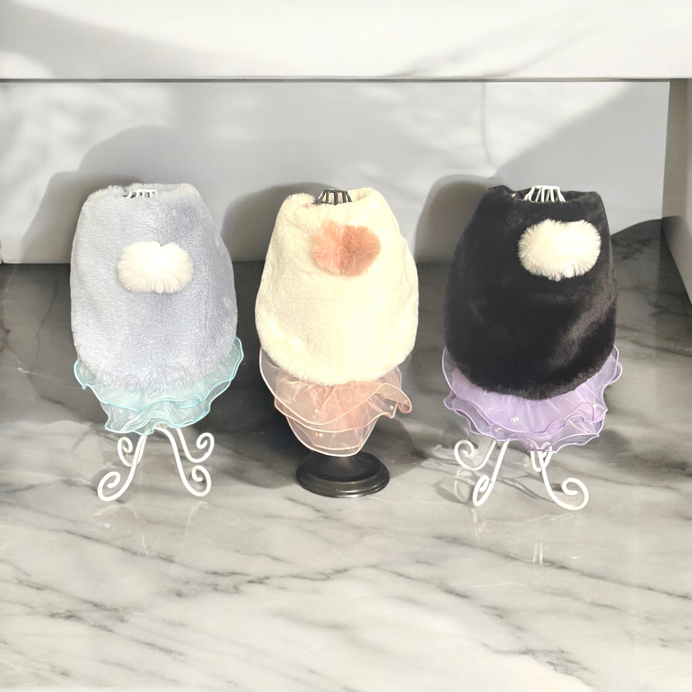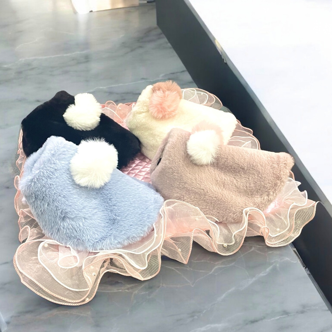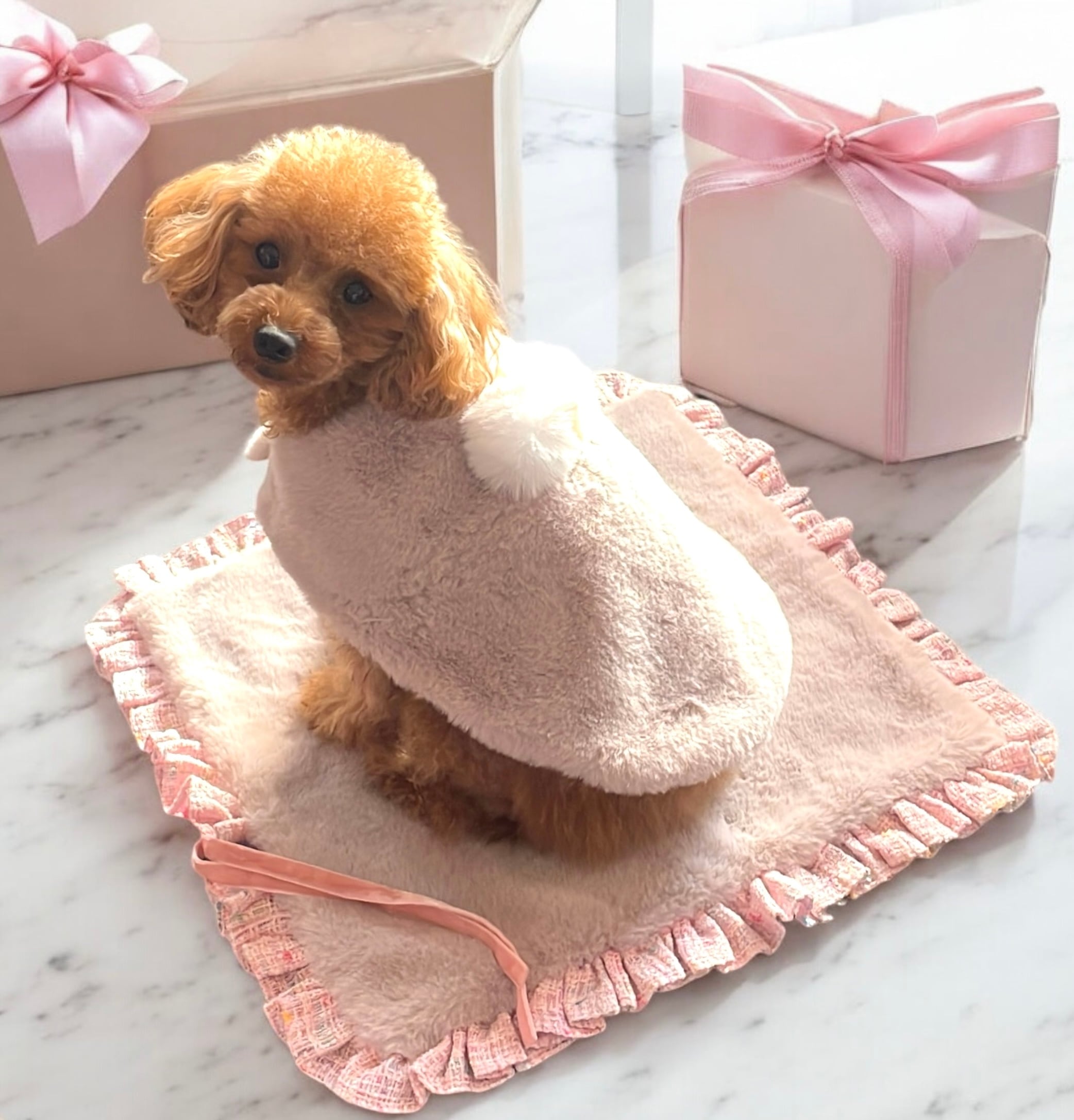 マジックテープで調節可能なファーケープコートです。ファーは柔らかくて手触り抜群。裏地は空気を含みやすいキルト綿と、空気を通しにくいタフタを合わせているので、薄手でも驚くほど軽くて暖かくて防寒としても最適です。また、おなか周りのゆとりが欲しいという声にお応えしてサイズ調整可能なアジャスターをご用意しております。こちらを装着していただくと最大7センチ大きくすることが可能です。ご希望の方はオプションよりお選びください。